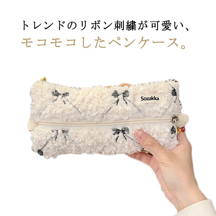 ペンケース かわいい リボン刺繍 もこもこ 大容量 高校生 筆箱 筆入れ ペン入れ ペンポーチ 化粧ポーチ ふわふわ 小学生 中学生 化粧品収納 小物 ポーチ クリスマス ギフト 韓国 コスメポーチ