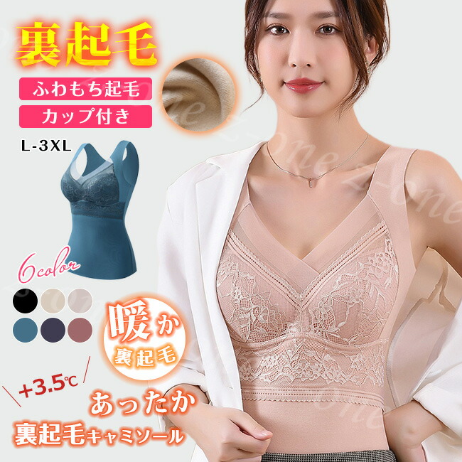 \/ 裏起毛 タンクトップ カップ付き インナー レディース 暖かい 発熱 下着 ノンワイヤー あったか 腹巻 起毛 レース 大きいサイズ ふわふわ L XL 2XL 防寒 冬 プレゼント ギフト 秋