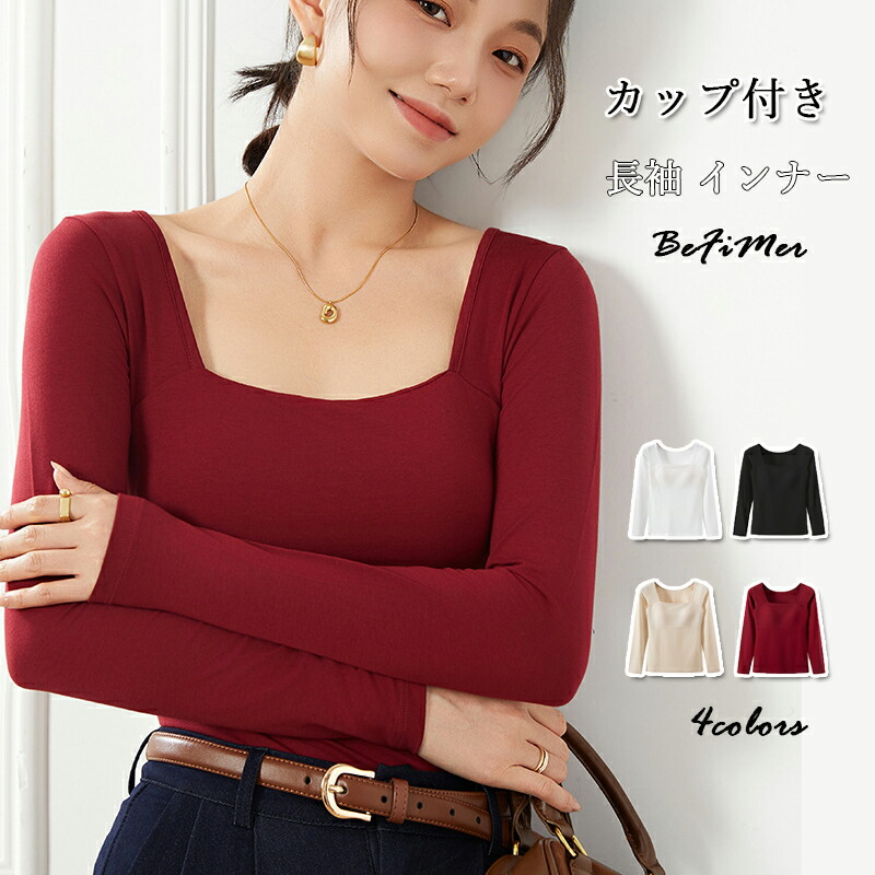 カップ付きインナー トップス 長袖 Tシャツ レディース 大きいサイズ 長袖インナー 下着 ブラトップ 無地 速乾 ストレッチ 伸縮性 通気性 締め付けない ルームウエア 部屋着 インナーシャツ 肌着