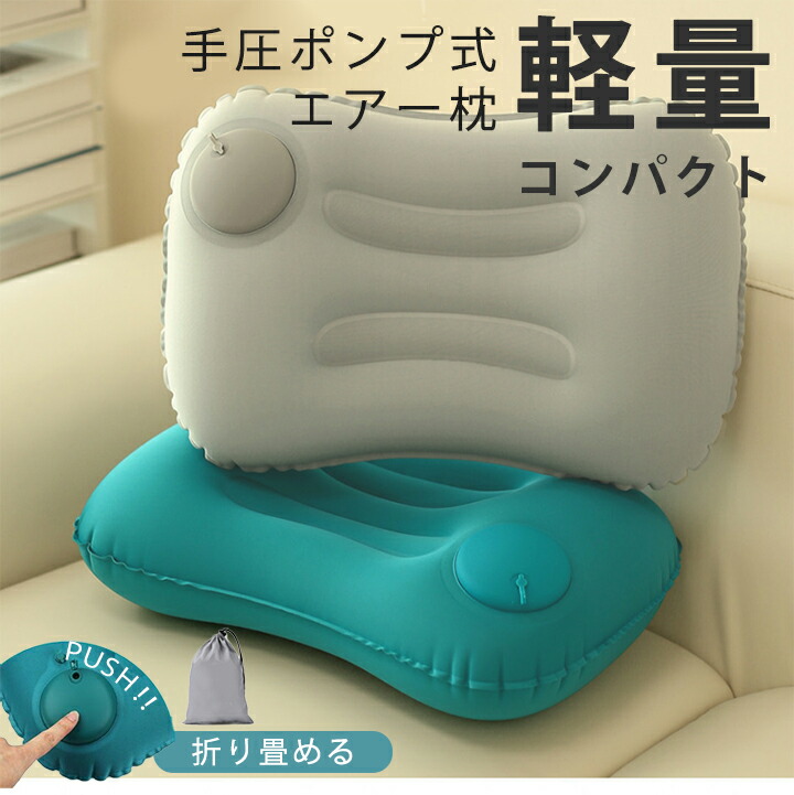 1AC ポンプで膨らむエアー枕 キャンプ用枕 折り畳める シンプル ドライブ 長距離 運転 仮眠 旅行 枕 首 飛行機 車 デスクワーク 旅行用 エアー ポンプ付き コンパクト 持ち クッション