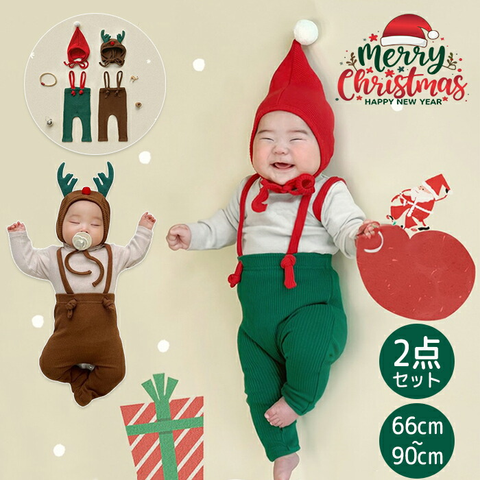 クリスマス コスプレ ロンパース ベビー着ぐるみ 帽子 衣装 サンタ トナカイ 2点セット セットアップ 子供服 女の子 男の子 オーバーオール 春 秋 冬 イベント 幼稚園 乳児 女児 男児 保育園