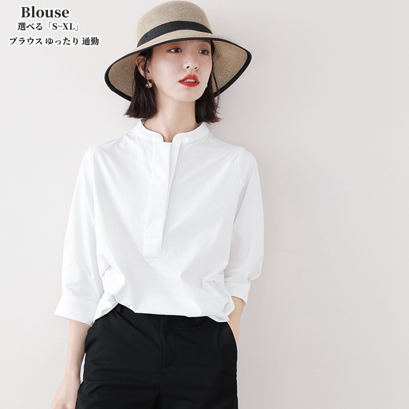 ブラウス レディース きれいめ 20代 30代 40代 春夏 オシャレブラウス シャツ 七分袖トップス カジュアルブラウス 大人 通勤 ゆったり シャツ 韓国風