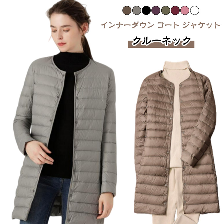 インナーダウン コート ジャケット ノーカラー クルーネック インナーダウンコート ロング 軽い あったか 保温 防寒 秋冬 ライトダウン ロングコート インナー