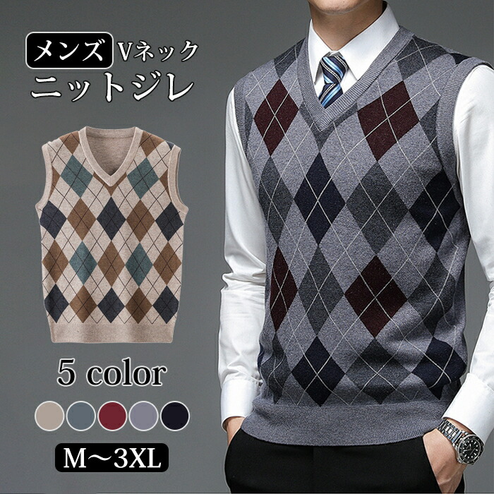 -3 メンズ ニットベスト スーツ フォーマル トップス ビジネス 春秋 冬 幾何柄 ネックベスト ビジネス カジュアル セーター シンプル グレー 紺色 青 父の日 敬老の日