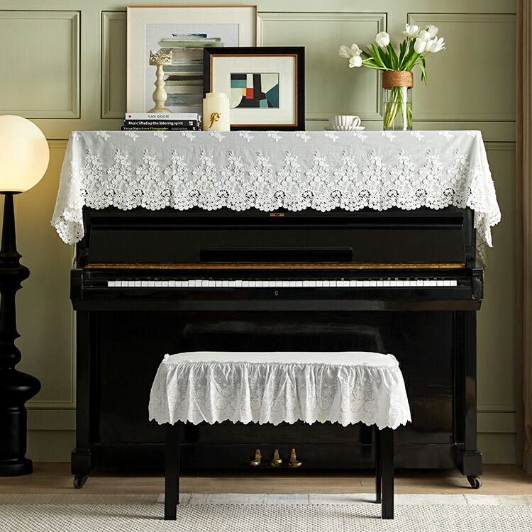 ピアノカバー アップライト 北欧 電子ピアノカバー アップライトピアノ イスカバー カバー おしゃれ レース 刺繍 花 蕾 可愛い 防塵カバー 直立型ピアノ用 保護カバー 二人掛 マルチカバー