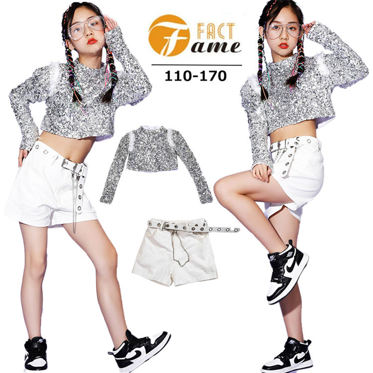 女の子 韓国風 イベント ヒップホップ ダンス衣装 シルバー スパンコール キラキラ ジャズ - 可愛い