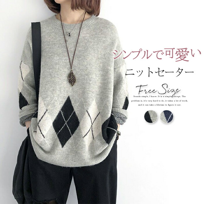 ニット セーター クルーネック レディース 長袖 秋 冬 プルオーバー インナー トップス ニットソー ニットウェア きれいめ ゆったり シンプル おしゃれ 大きいサイズ 体型カバー
