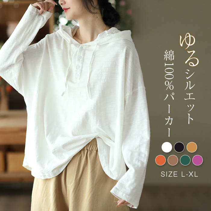 パーカー レディース 長袖 tシャツ 春 秋 薄手 大きめ フード付き Tシャツ トップス tシャツパーカー シンプル カジュアル 着回し 大人 重ね着 ゆったり 大きいサイズ オーバーサイズ ゆる