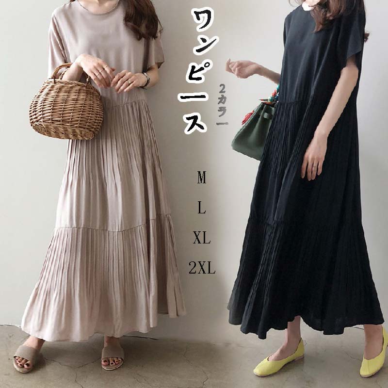 春夏 人気 新作 韓国 レディース ロングワンピース 半袖 シャツ ドレス 女性 無地 プリーツスカート 氣質 大人 お母さん 上品 ファッション 普段着 結婚式 二次 通勤 日常 L XL 2X M