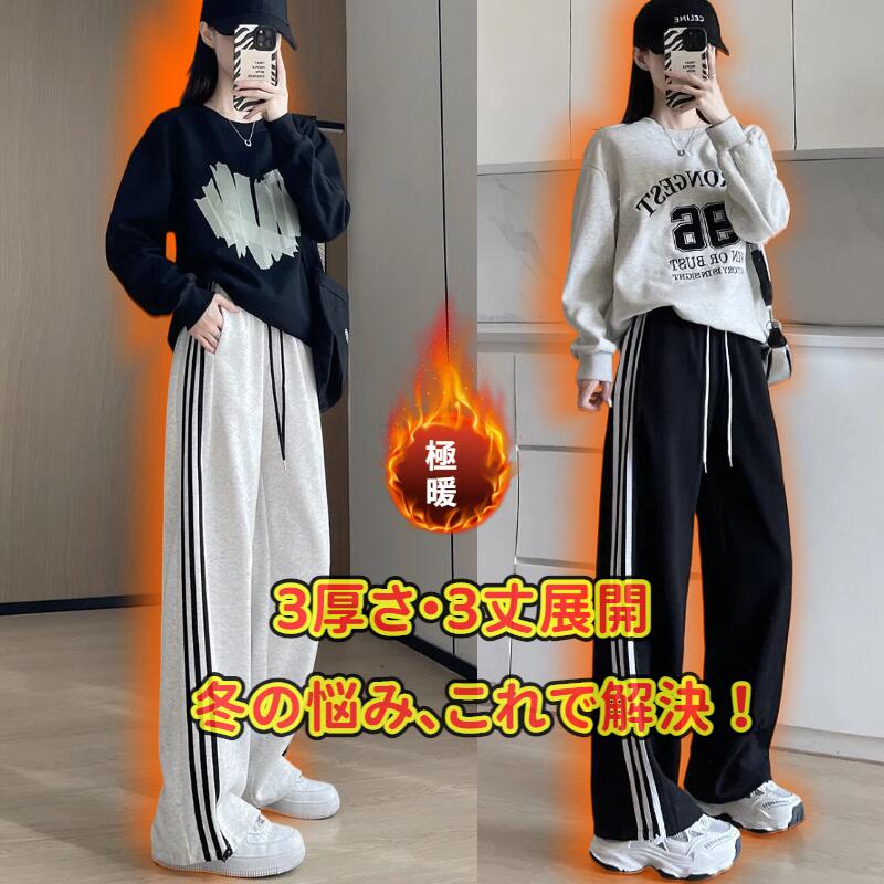 ふんわり裏起毛で寒い日もぽかぽか。配色サイドラインが縦ラインを強調して、美脚・脚長見せをサポート。裾2で、スポーティにもキレイめにも自由自在。