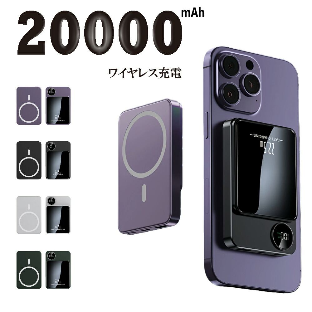 1点2,797円 クーポンで モバイルバッテリー ワイヤレス充電器 20000mAh 強力マグネット 急速充電 22.5W 対応 3台同時充電 Type-C magsafe