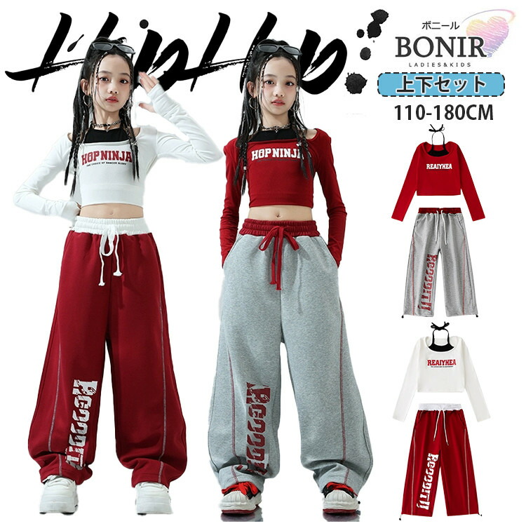 赤 灰 スウェットパンツ 子供服 キッズダンス hiphop ダンス衣装 女の子 ホワイト レッド 肩出し オフショルダー 長袖 へそ出し グレー カーゴ ズボン ジャッズ 団体服 練習着 ガールズ