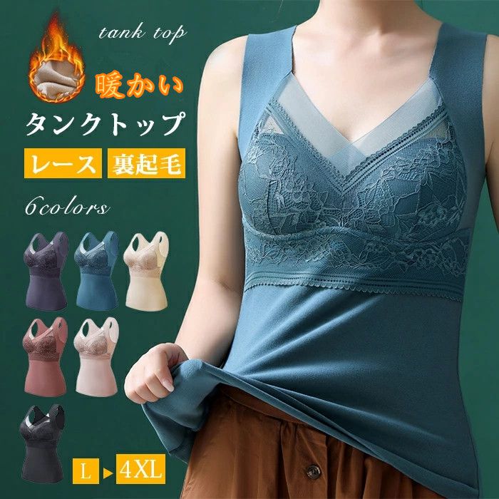 裏起毛 タンクトップ カップ付き ノンワイヤー あったかインナー レディース インナー ヒートインナー 下着 肌着 保温 防寒 冬 軽い 暖かい 耐久 快適 無地 おしゃれ 大きいサイズ L レース