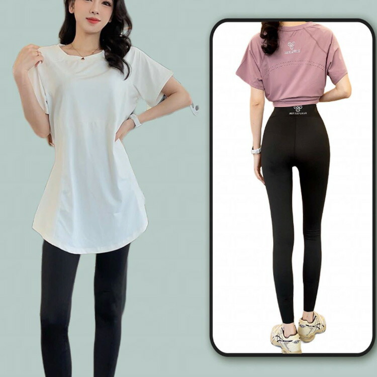 おしゃれ スパッツ ピラティス tシャ スポーツ アウトドア 特集 ブラック ホワイト ピンク M L XL 2XL
