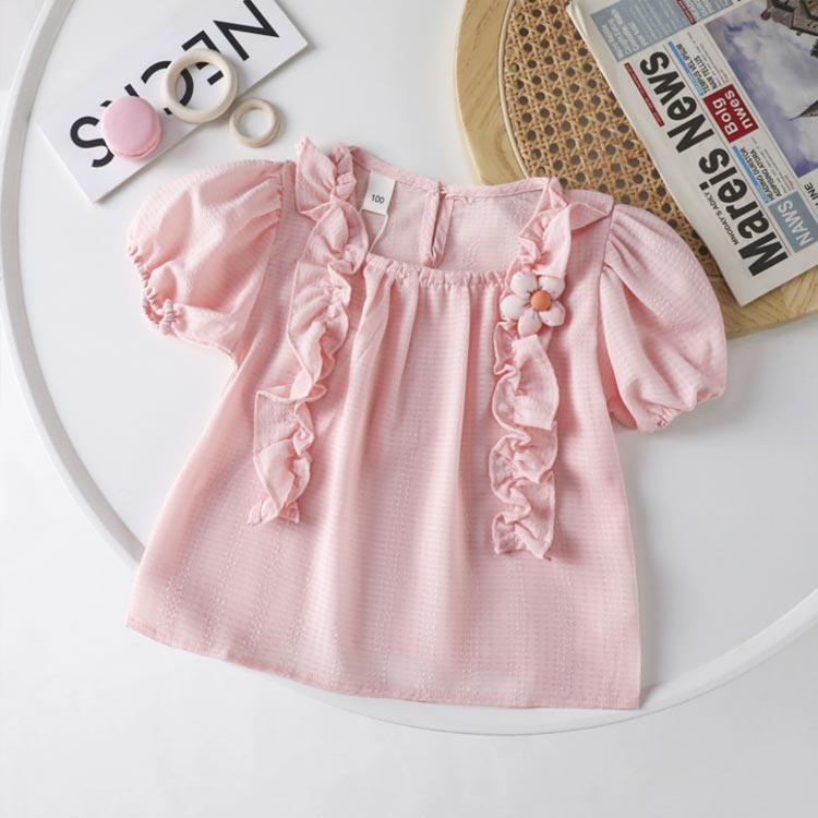 キッズ 半袖シャツ ブラウス 女の子 キッズ トップス Tシャツ カットソー 新登場! ブルー ホワイト ホワイト花柄 ピンク アイボリー グリーン花柄 80 90 100 110 120 130