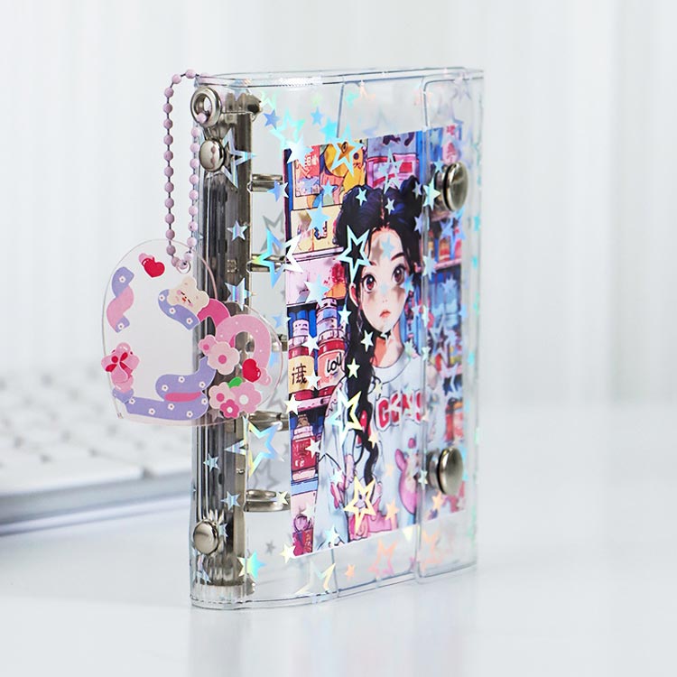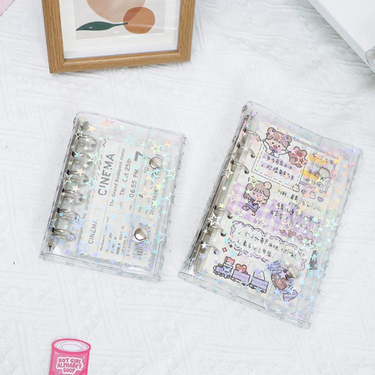 システム手帳 M5 A6 A7サイズ シール帳 透明 バインダー 星柄タイプ クリア手帳 6穴リング カスタマイズ手帳 DIYデコ リフィルセット コンパクト手帳 PVCカバー スケジュール ミニ手帳