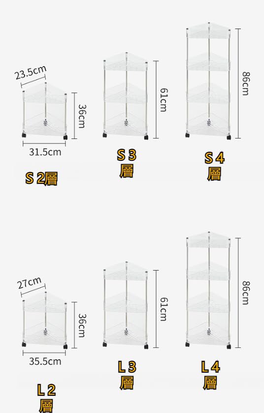 コーナー収納ラック キャスター付き 三 Small 2層 Large 2層 Small 3層 Large 3層 Small 4層 Large 4層