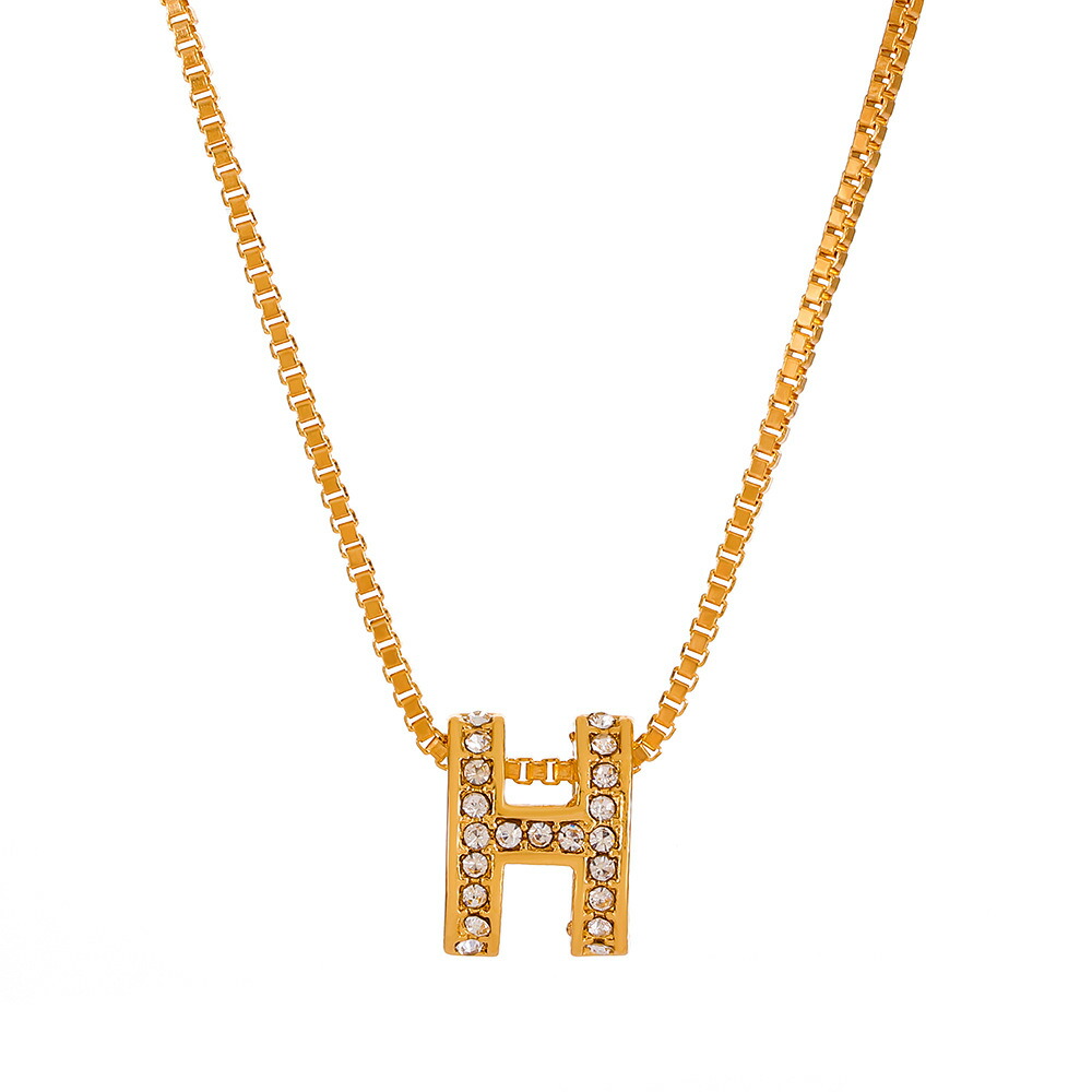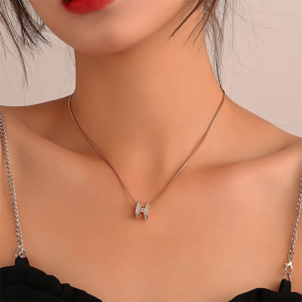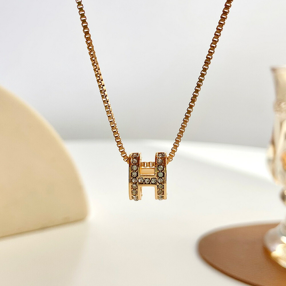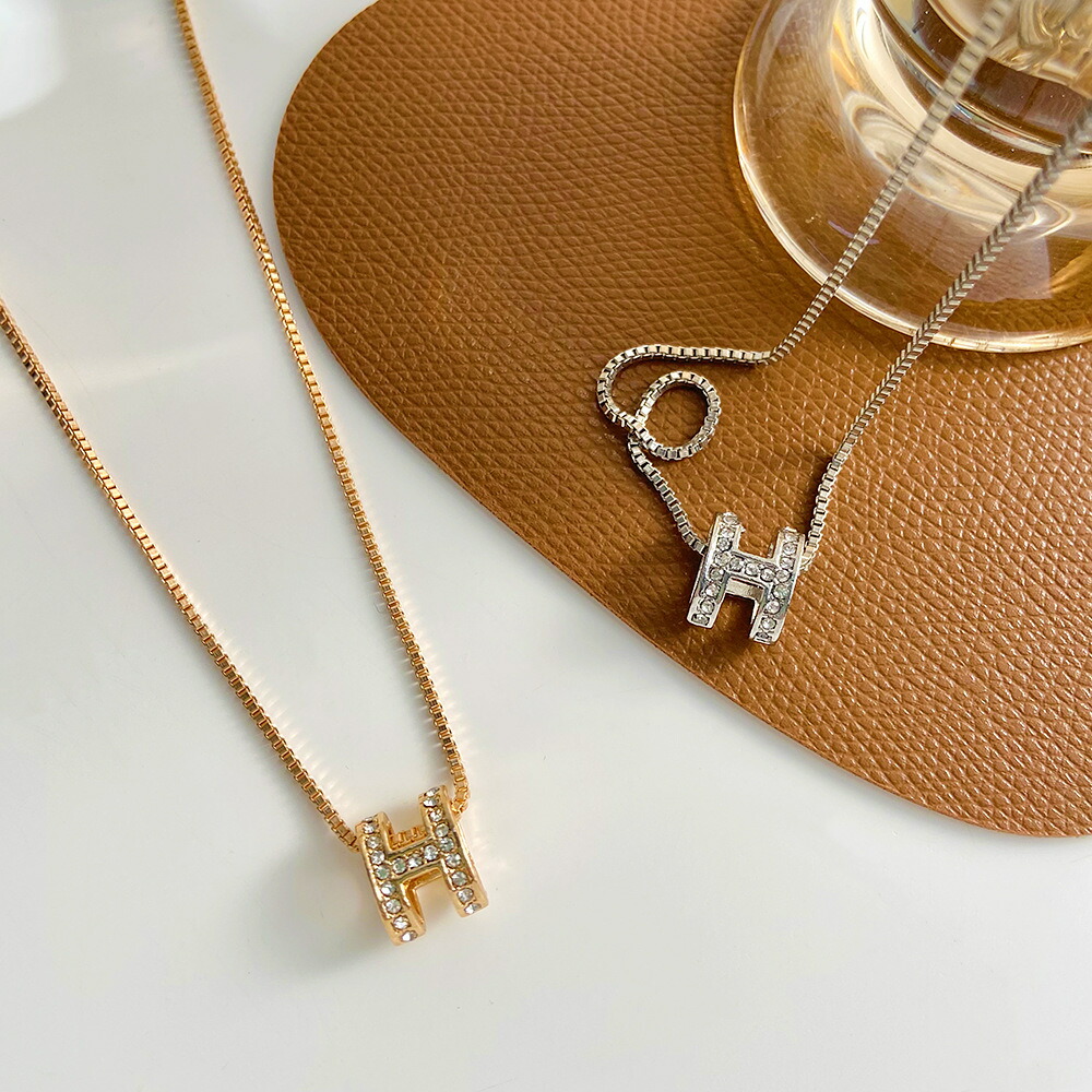 女性用ダイヤモンドHペンダントネックレス ファッショナブルでシンプルなメタル幾何学鎖骨チェーンネットレッドネックレス