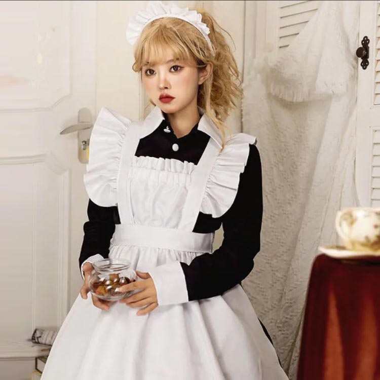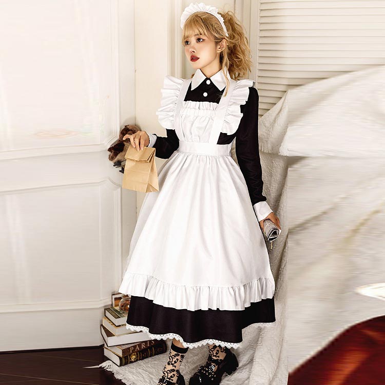 メイド服 エプロン 長袖 クラシック ホビー 通販 S M L XL 2XL 3XL