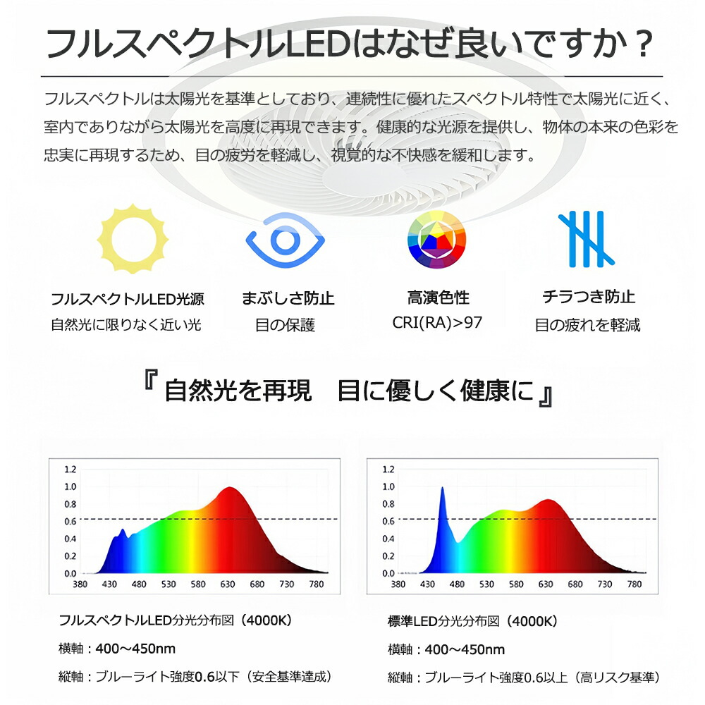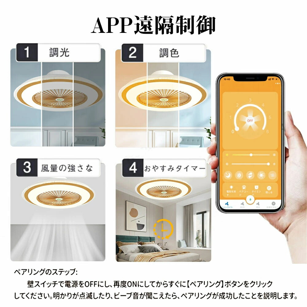 シーリングファンライト led ファン ホワイト ゴールド ブルー ベーシック ルーバー回転+スマホAPP操作機能