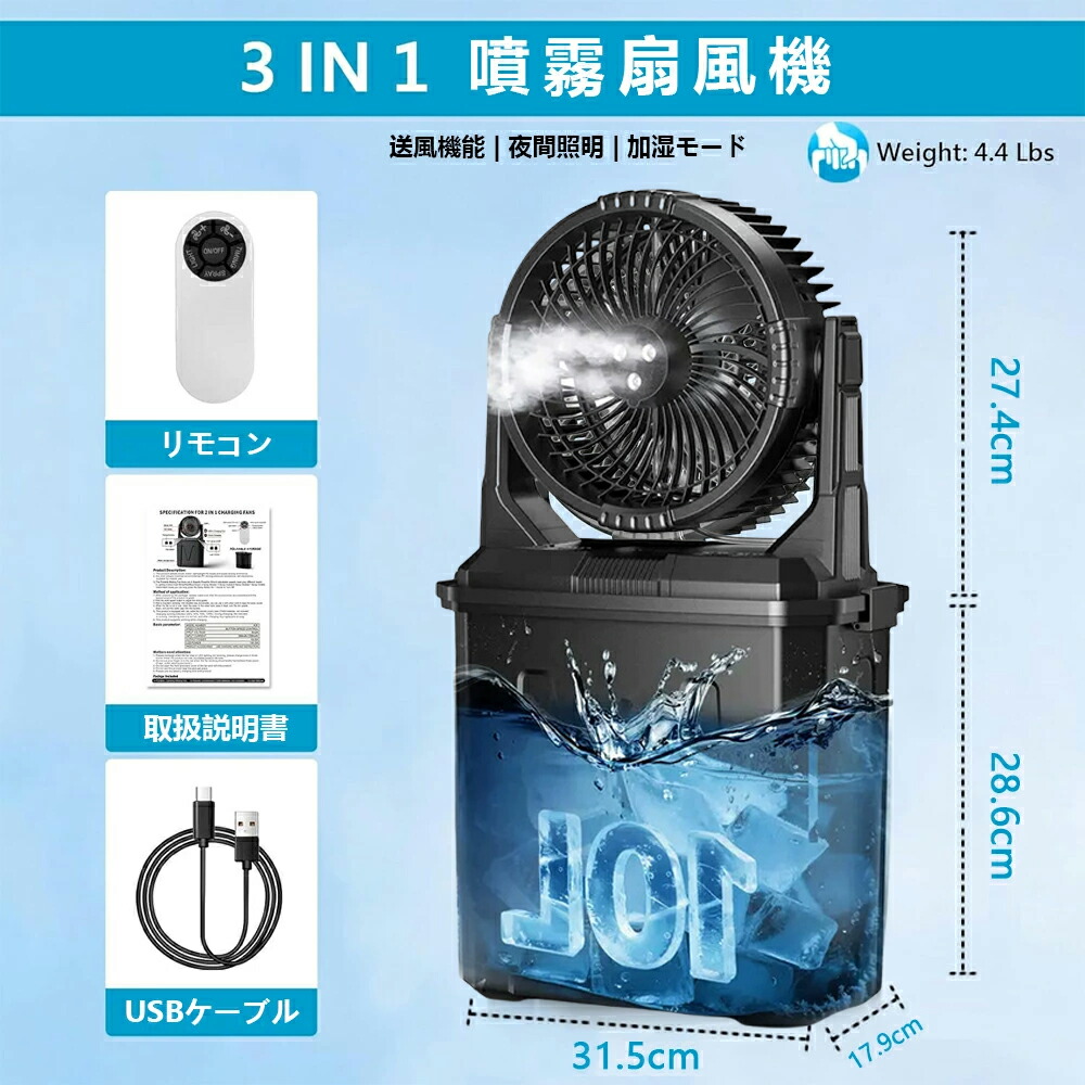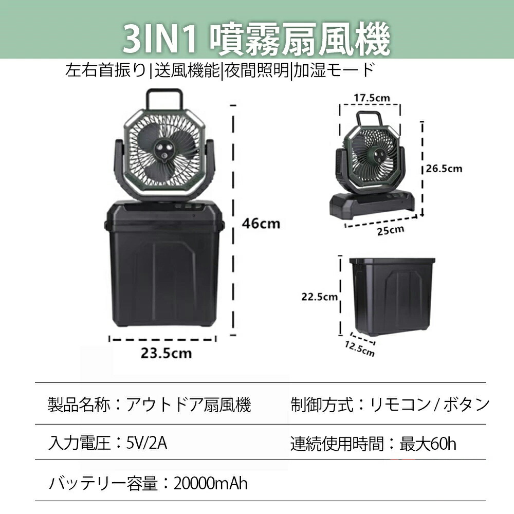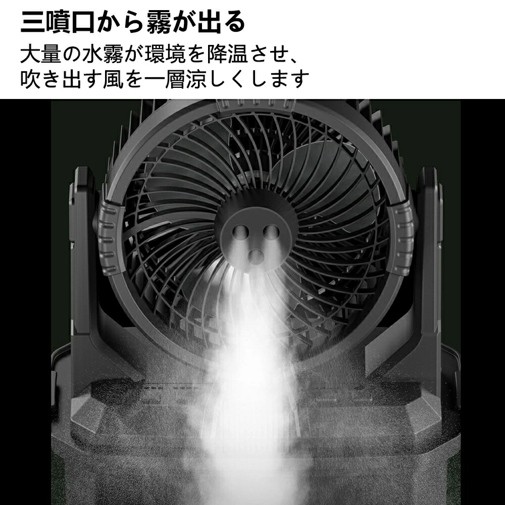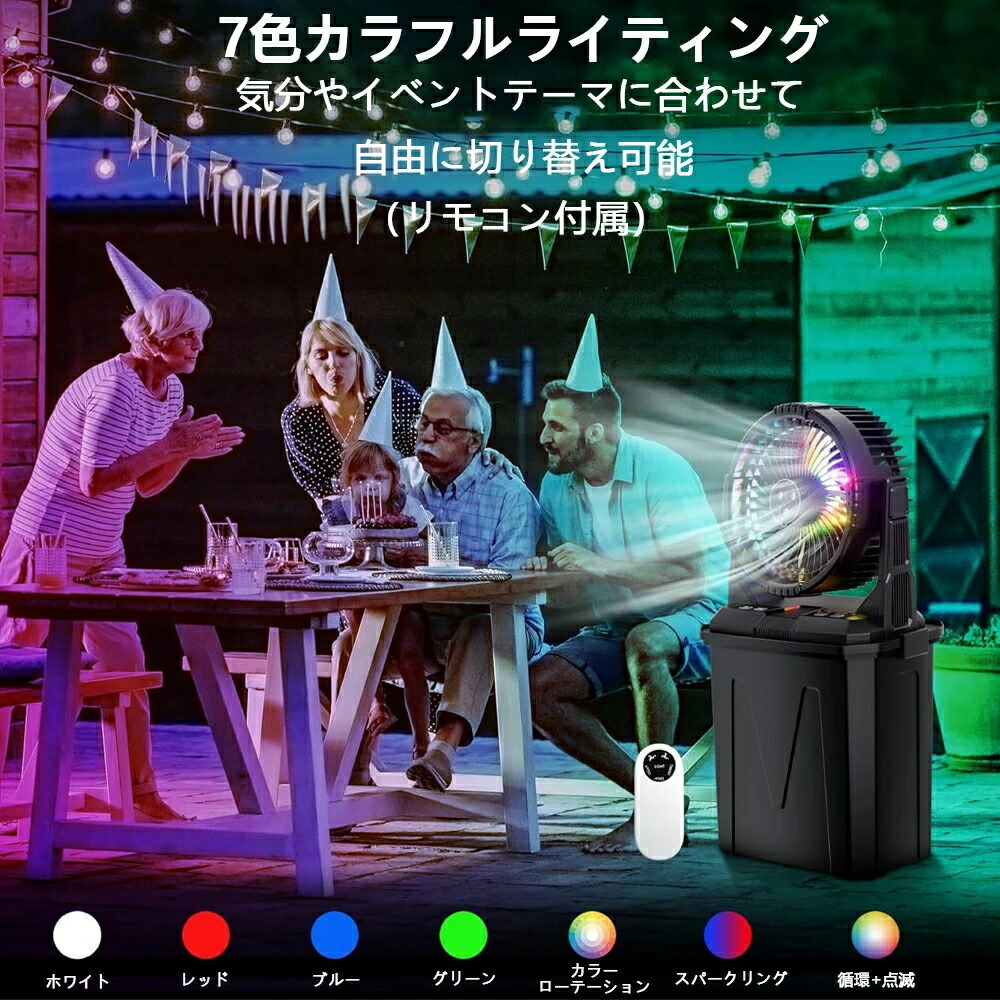 キャンプ扇風機 ミスト扇風機 ミストフ オレンジ グリーン ブラック 10L【RGBW雰囲気灯】 6L【首振り+照明】