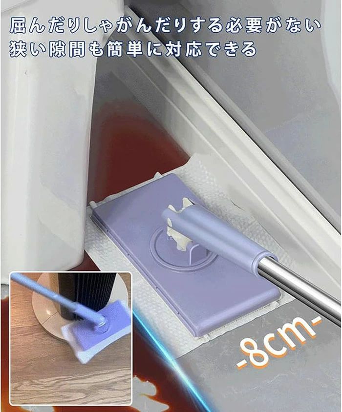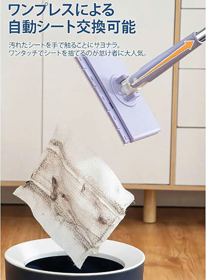 自動で雑巾を挟むモップ、ペーパータオル 日用品雑貨 文房具 手芸 通販 パープル+4枚両面布 ホワイト+4枚両面布 70cm 93cm