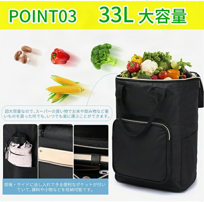 【 33L大容量】超大容量なので、スーパーの買い物でお米や飲み物など重いものを買った時でも、いつでも楽に運ぶことができます。