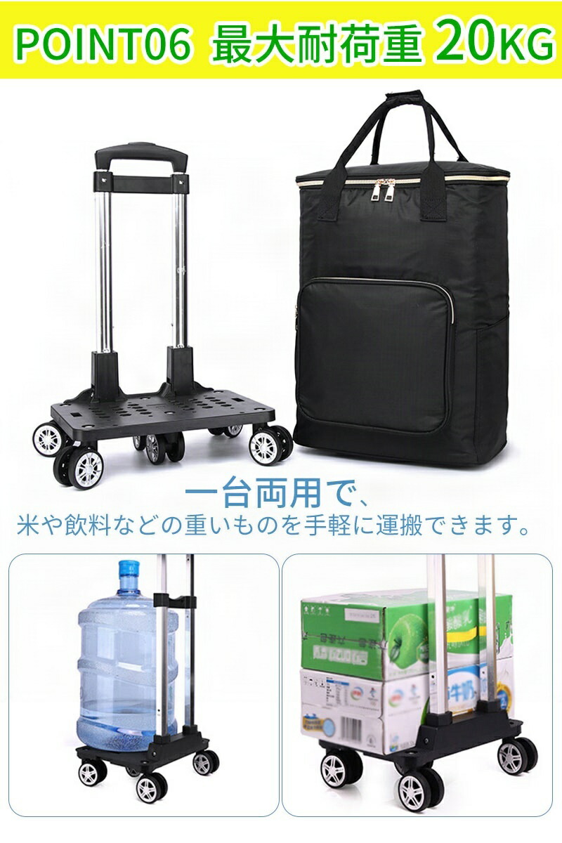【最大耐荷重20KG】一台両用で、米や飲料などの重いものを手軽に運搬できます。