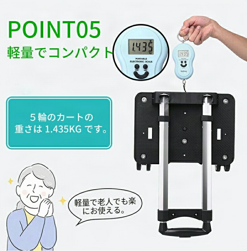 【軽量でコンパクト】5輪のカートの重さは1.435KGです。