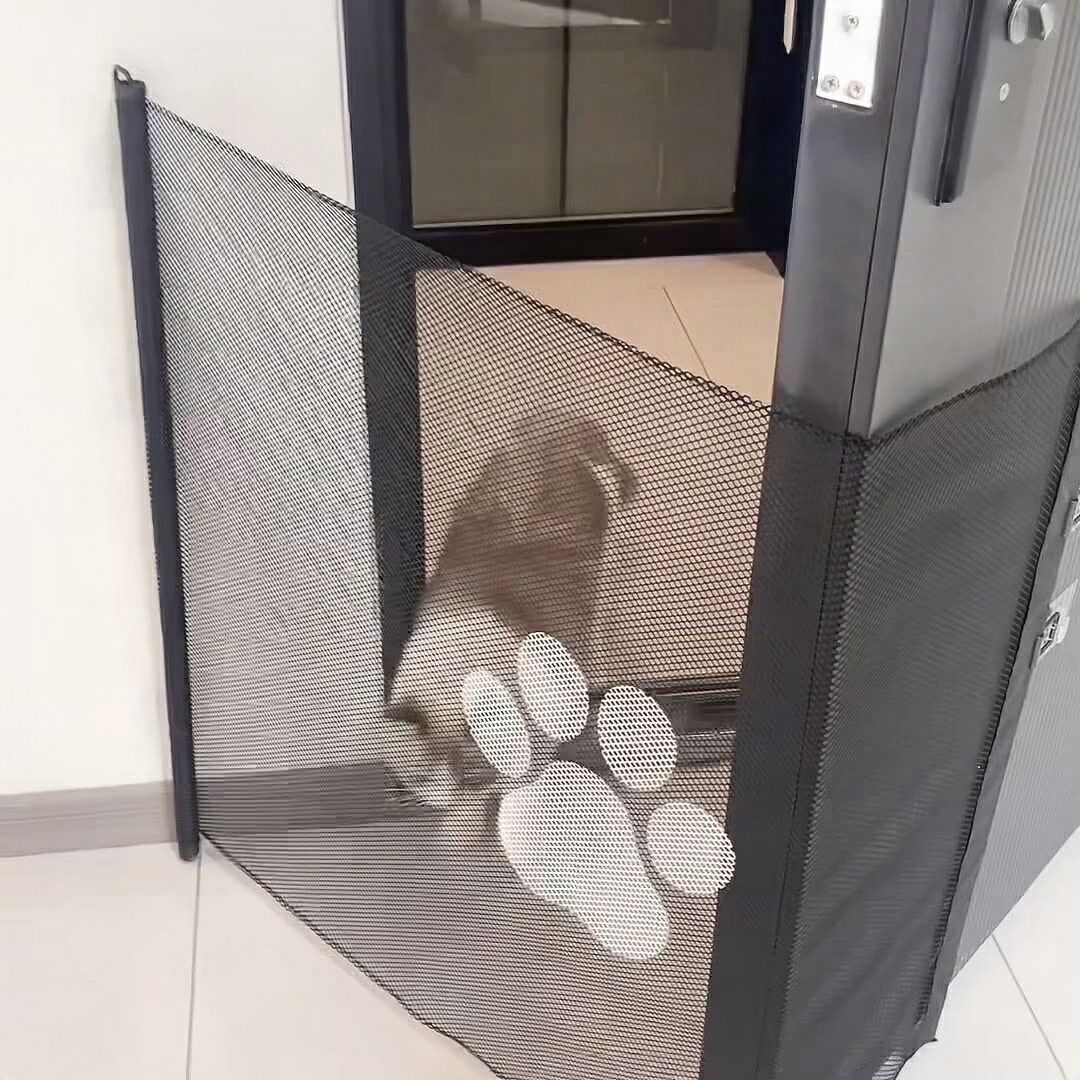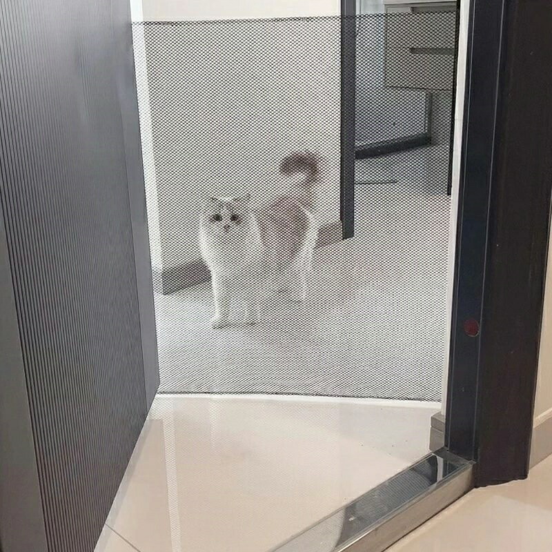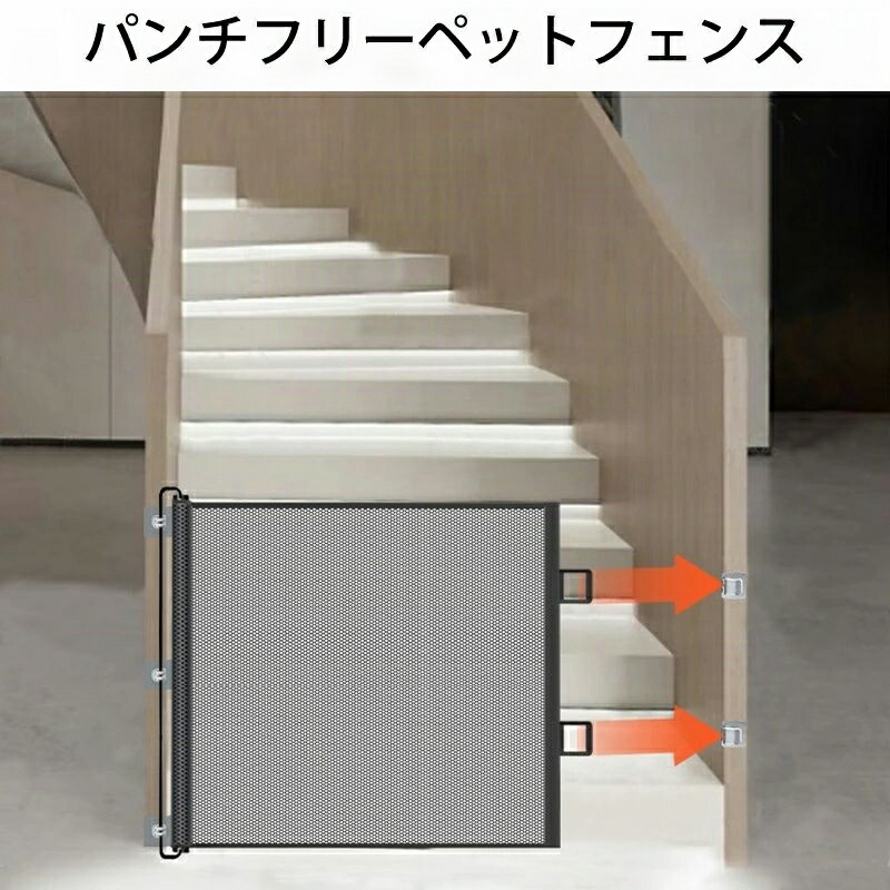 自動格納式 ペットゲート 安全 ドア 廊下 玄関 ペットフェンス キャットウォール ベランダ キッチン 階段下 侵入防止 走防止ゲート 階段上 赤ちゃん 猫 犬に適応 屋内階段通路隔離ネット ペット