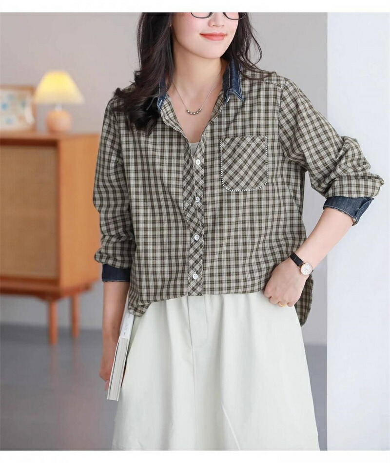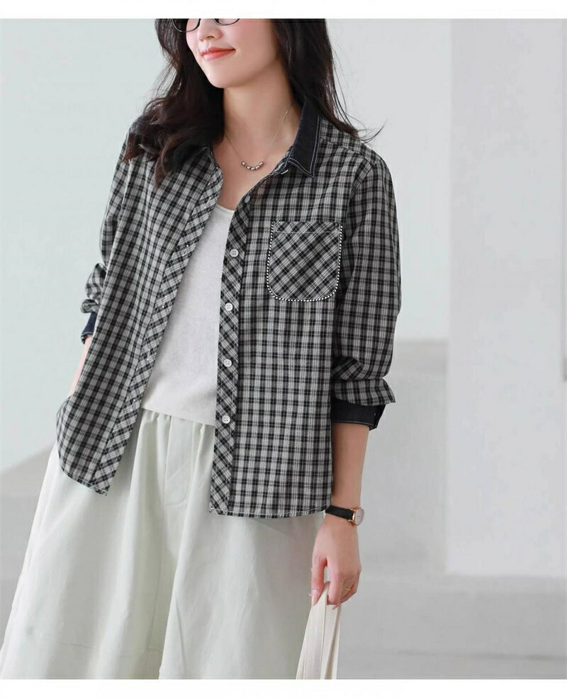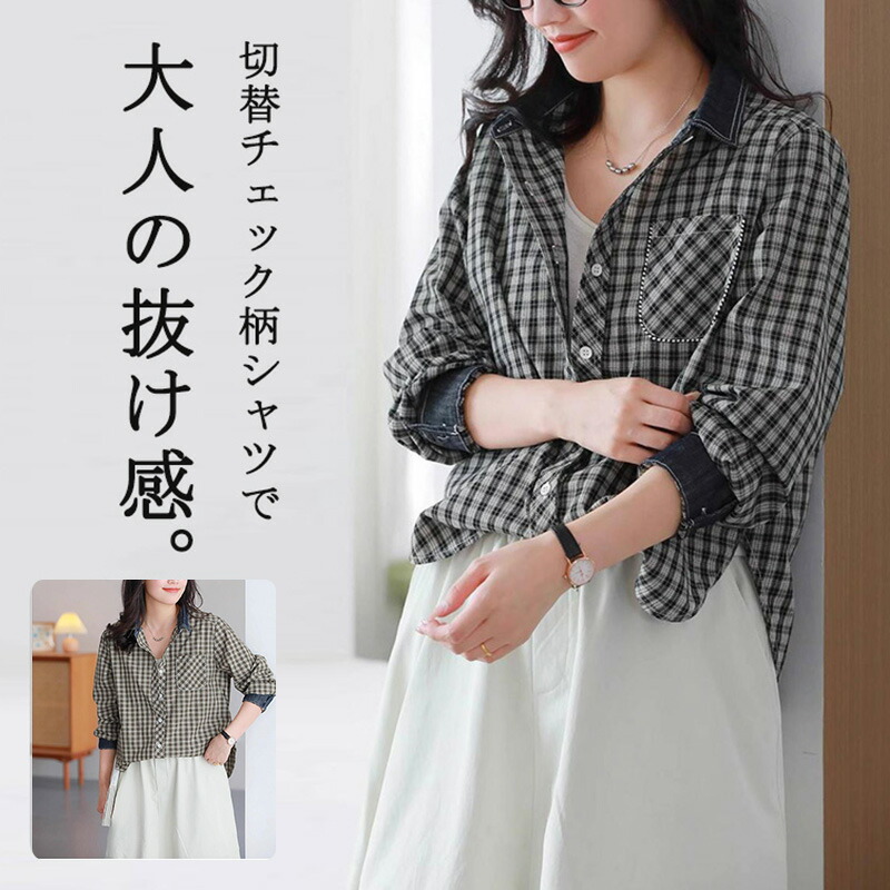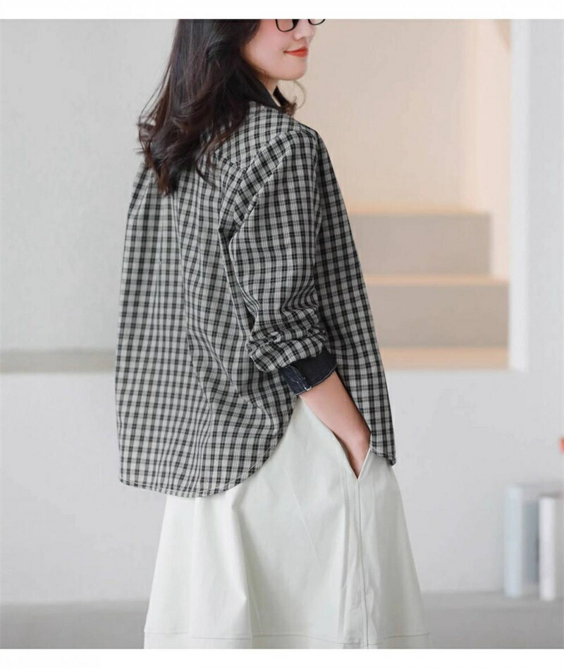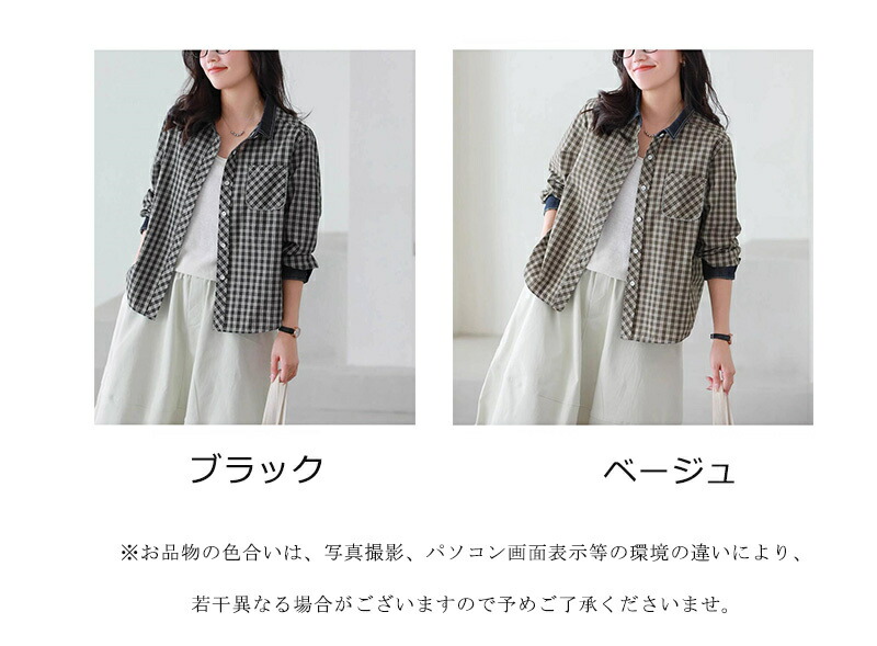 シャツ チェック柄 長袖 シャツブラウ レディースファッション 超目玉商品 ブラック ベージュ M L XL 2XL