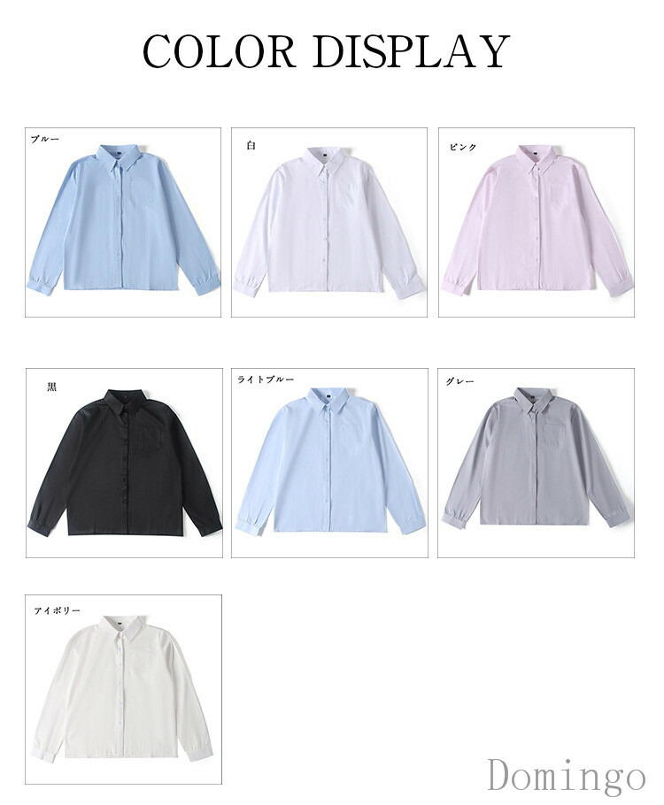 スクール シャツ ワイシャツ 制服 長 白 黒 アイボリー グレー ブルー ライトブルー ピンク XS S M L XL 2XL 3XL 4XL