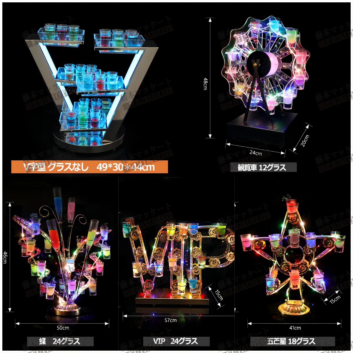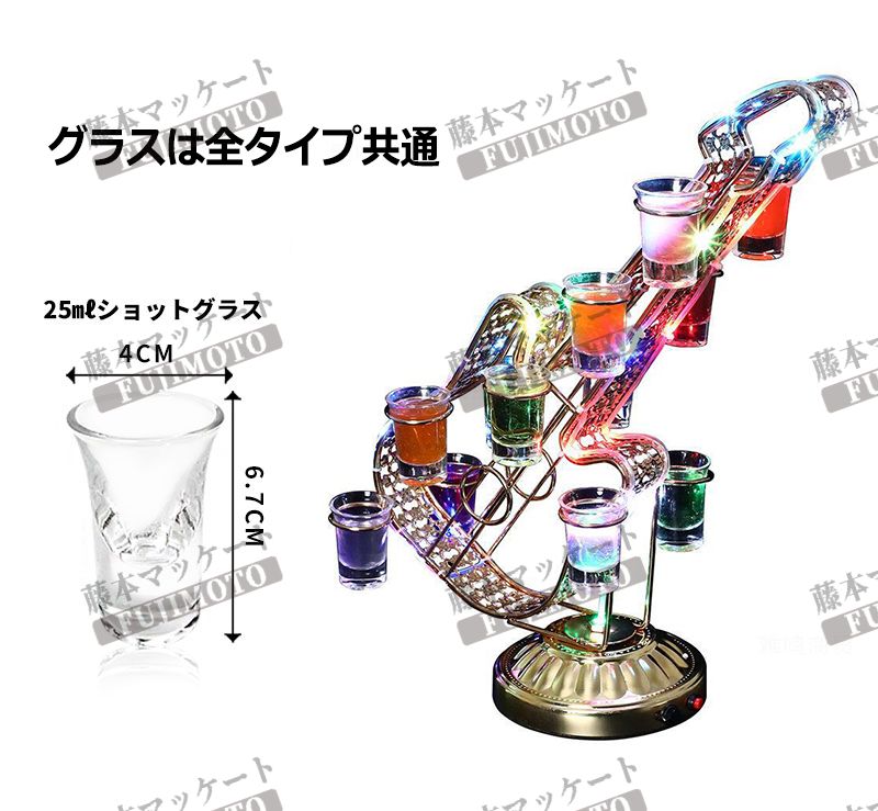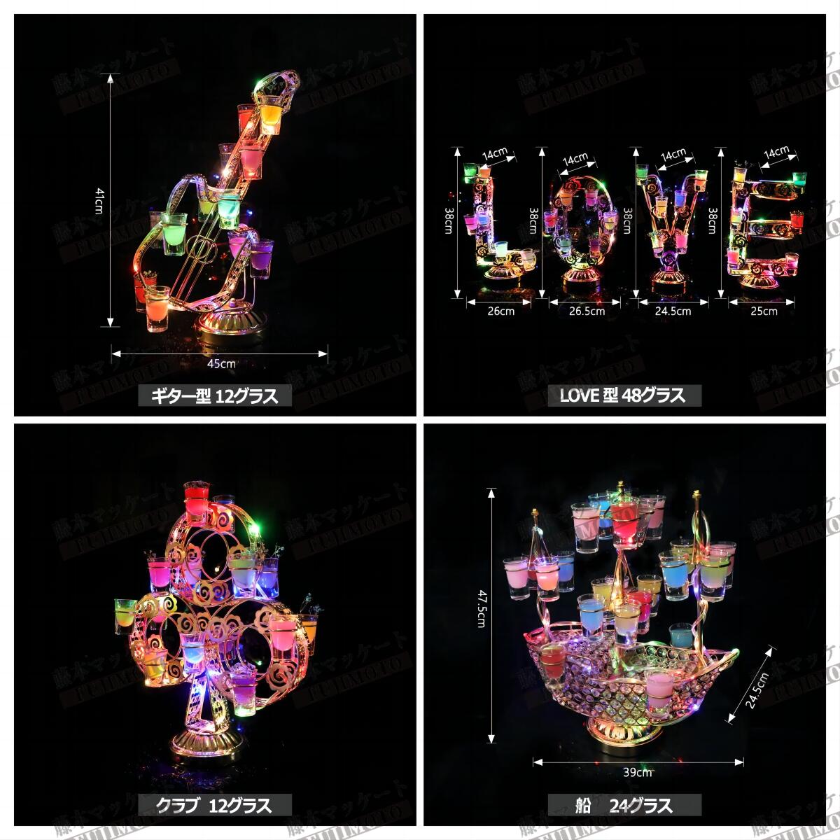 LED酒グラス棚幻の船 LED酒ボトル 船型 観覧車 ハード VIP ギター 五芒星 V字型 螺旋 サックス 円型 LOVE型 蝶 クラブ グラス付き グラスなし