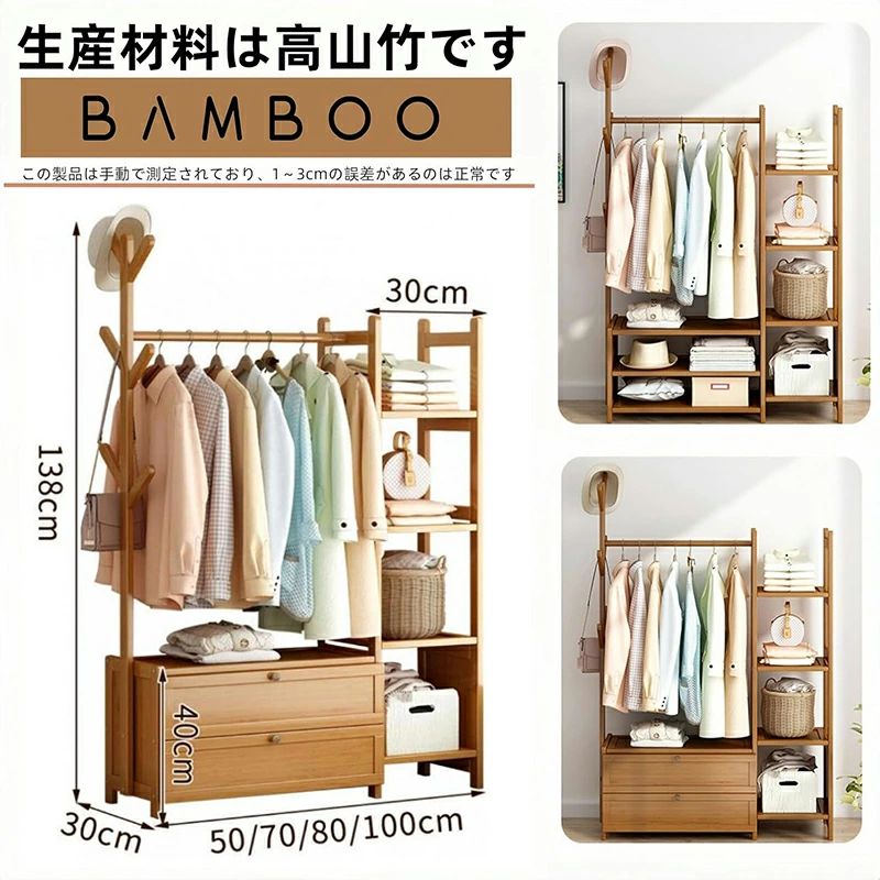 ハンガーラック 棚付き 竹製 頑丈 ス ナチュラル-幅50cm ナチュラル-幅70cm 茶色-幅50cm 茶色-幅70cm ナチュラル-幅50cm(カバー付) ナチュラル-幅70cm(カバー付) ナチュラル-幅80cm(カバー付) ナチュラル-幅100cm(カバー付) 茶色-幅50cm(カバー付) 茶色-幅70cm(カバー付) 茶色-幅80cm(カバー付) 茶色-幅100cm(カバー付)
