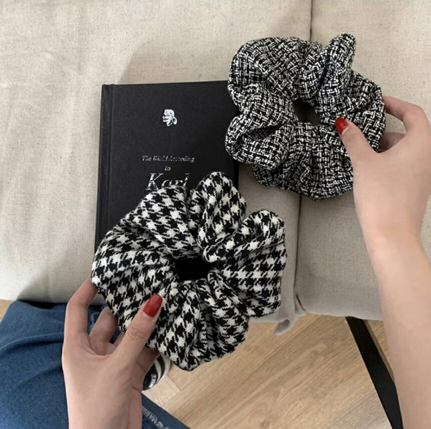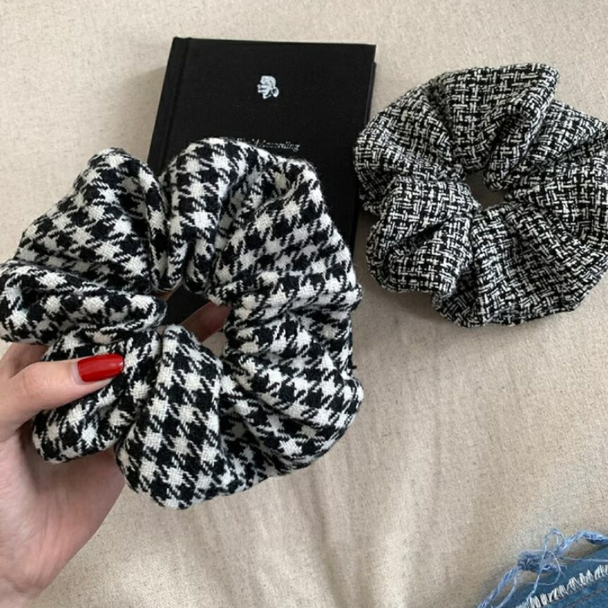 チェックシュシュ ヘアゴム ビッグシュシュ カラーツイードシュシュ レディースヘアアクセサリー おしゃれ 大人可愛い