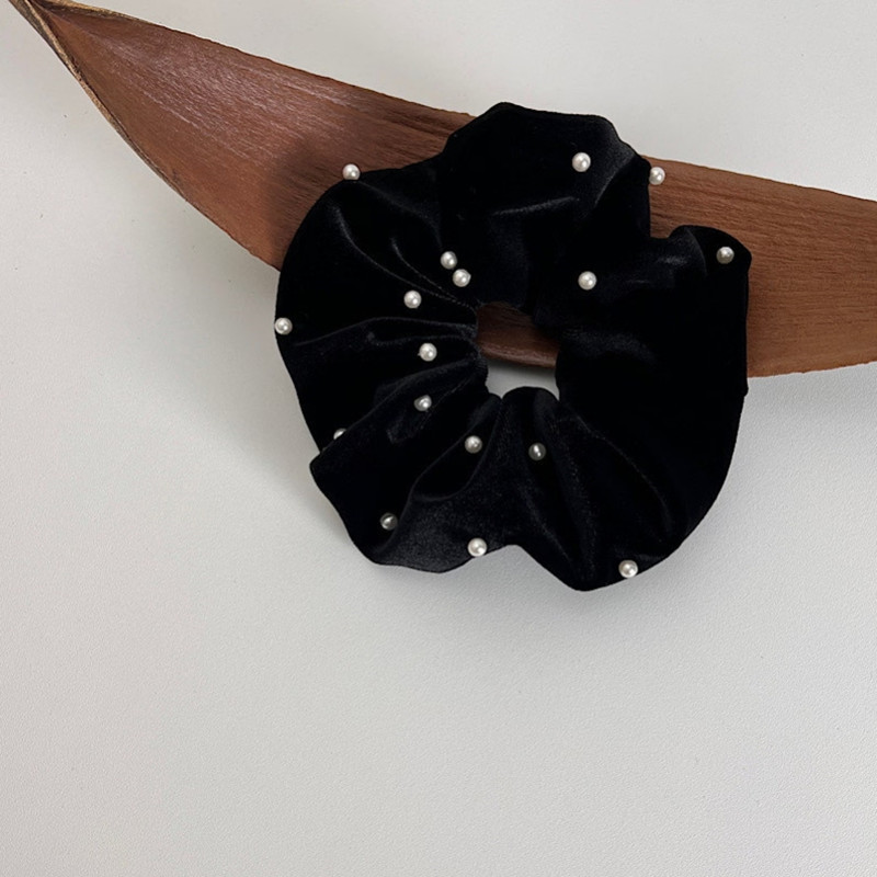 ヘアゴム ベロアシュシュ パール付きベ レディースジュエリー アクセサリー ヘアアクセサリー シュシュ 豊富 (大)直径約14cm (小)直径約12cm