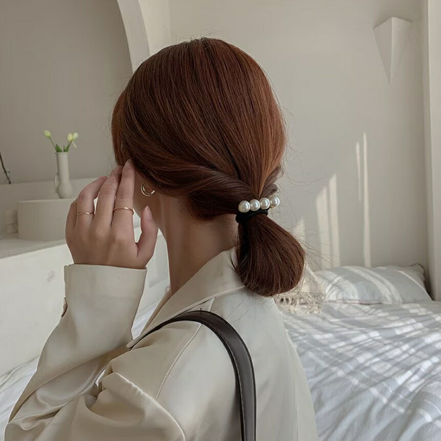 大人かわいいパールのヘアゴム。