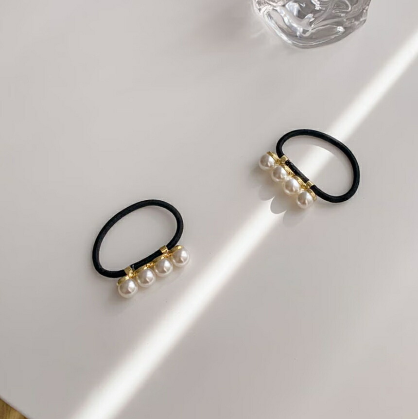 パールヘアゴム 4連パールヘアゴム ヘアゴム1点 おしゃれ シンプル オフィス レディースヘアアクセサリー 大人可愛い