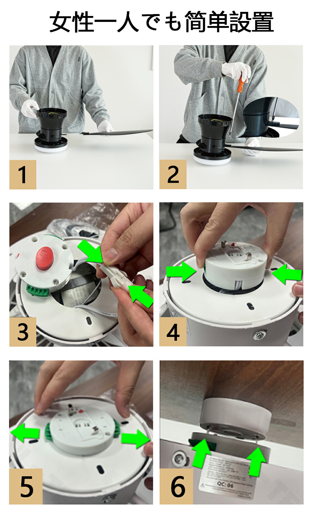 床置きしていたがシーリングライトと一体となることで省スペース+お子様も安心!冷房や暖房の空気循環が叶い、一年中活躍します。