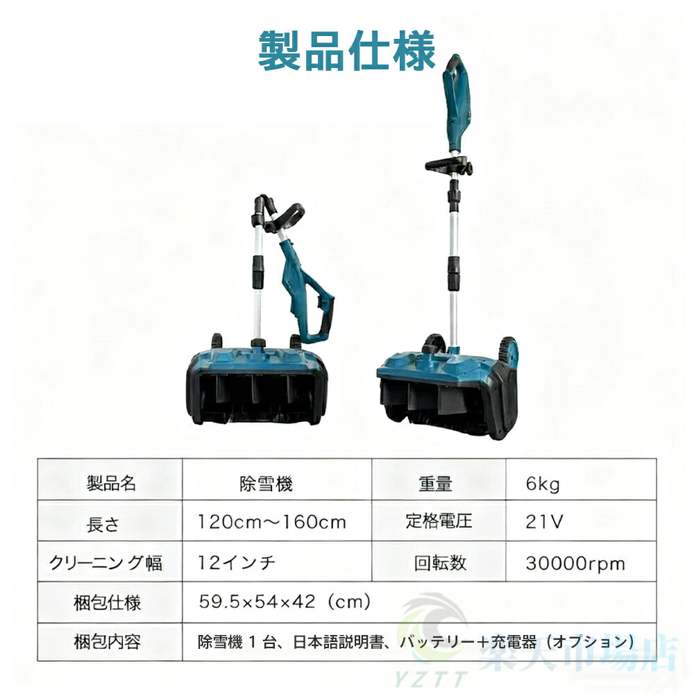 電動除雪機 除雪機 充電式 コードレス除雪機 雪かき 電動 スコップ 家庭用 除雪幅30.5cm 3.0AH 21V バッテリー互換 ショベル 雪かき機 小型除雪 電動除雪スコップ