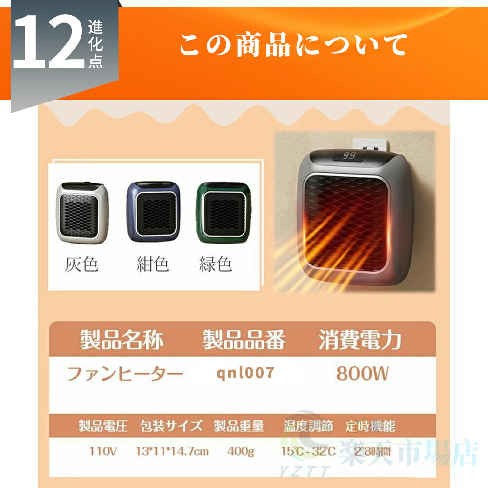 セラミックヒーター 電気ストーブ 壁掛 グレー ブルー グリーン