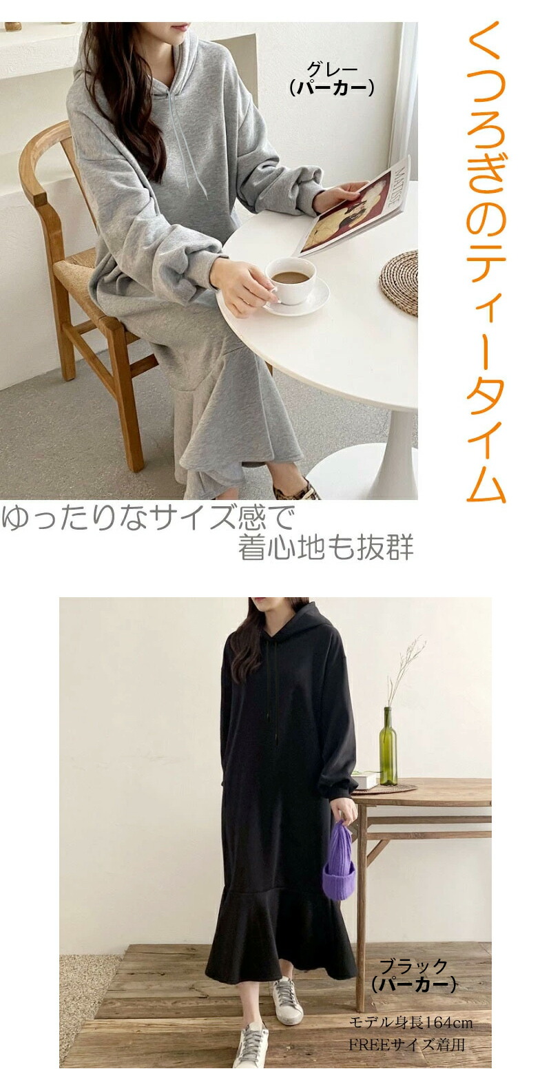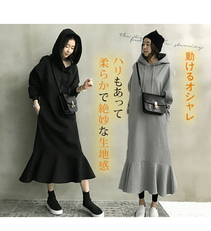 裏起毛 ワンピース マーメイド パーカ レディースファッション 新登場! ブラック(パーカー TYPE) グレー(パーカー TYPE) ブラック(トレーナー TYPE) グレー(トレーナー TYPE)