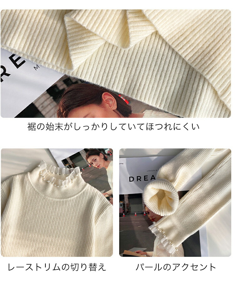 パール トップス ニット レディース レディースファッション 豊富 アイボリー ブラック ホワイト ベージュ