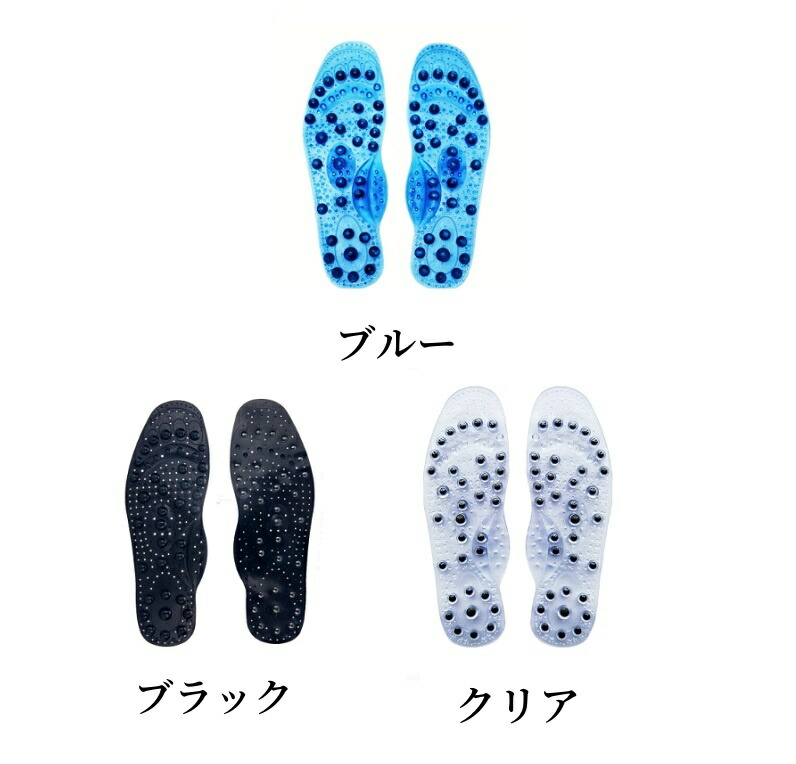 磁気インソール 足つぼ 中敷き 指圧イ ブラック ブルー クリア 35-40 41-45