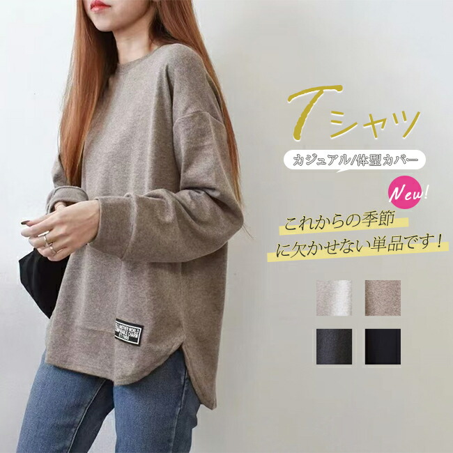 長袖Tシャツ レディース トレーナー レディースファッション 特集 ブラック カーキ ライトグレー ダークグレー