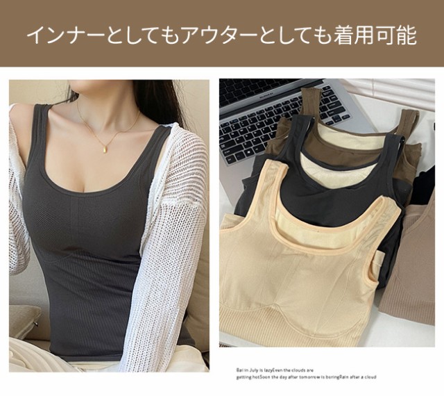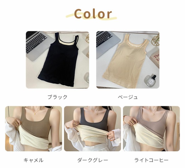 厚地 下着 パッドつき キャミソール インナー 下着 ナイトウエア 特集 ベージュ キャメル ダークグレー ライトコーヒー