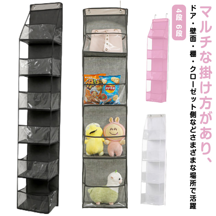 ぬいぐるみ 収納 おもちゃ ドア掛け式 4段ホワイト 4段グレー 4段ピンク 6段ホワイト 6段グレー 6段ピンク 6段ブラック 4段 6段