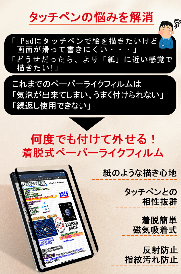 【紙のような描き心地】着脱式ペーパーライク フィルム iPad Air 11インチ iPad Pro 13インチ M2 M3 M4 M5 A16 iPad A16 第11世代 第10世代 第9世代 第8世代 液晶保護フィルム iPad Air5 mini7 mini6 Air4 iPad Pro 11 12.9 13 インチ iPad mini5 mini4 Air3 第 7 6 5 4 3 世代 8.3 9.7 10.2 10.5 10.9 フィルム 2022 タッチペン iPad ペンシル アンチグレア 非光沢 指紋/反射防止 ガラスフィルム iPad Air iPad Pro 9.7 フィルム アイパッド エアー マグネット対応 2025年 新型2025 新発売 最新 モデル 新型iPad