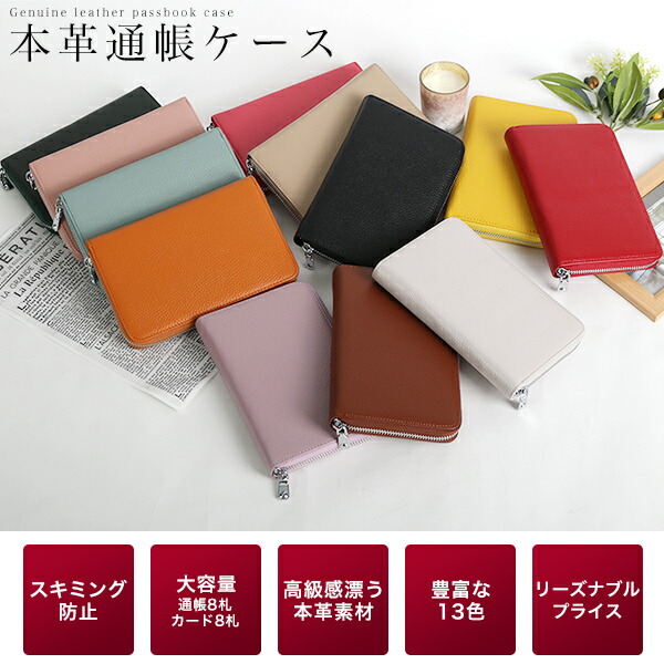 通帳ケース 磁気 防止 本革 かわいい 財布 ケース クレジットカードケース 通販 ライトグレー ピンク ワイン