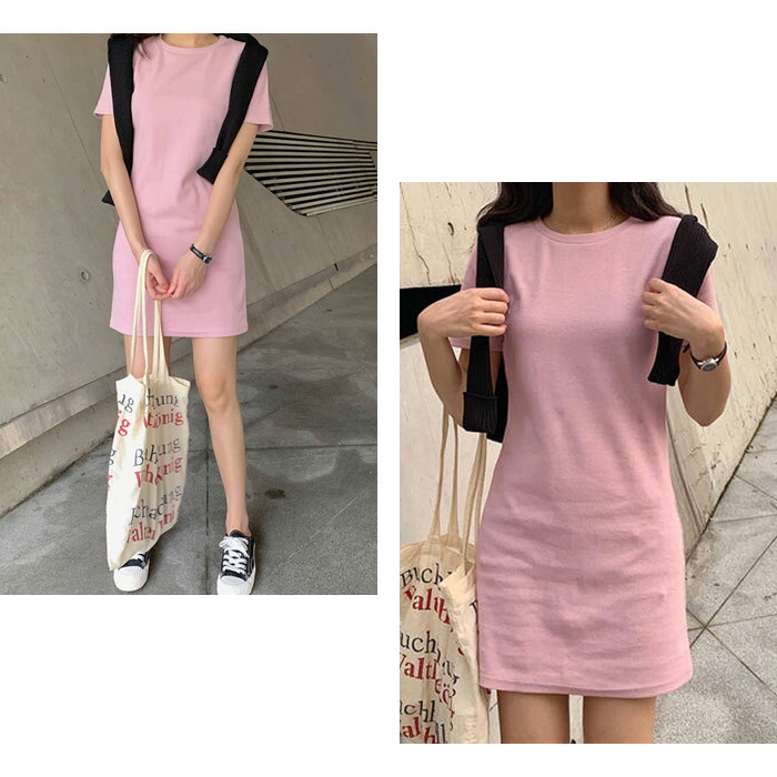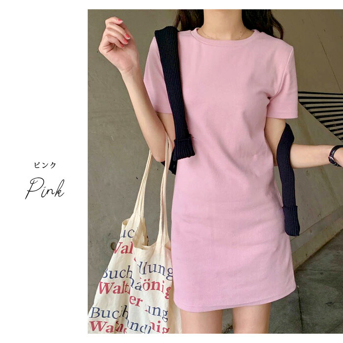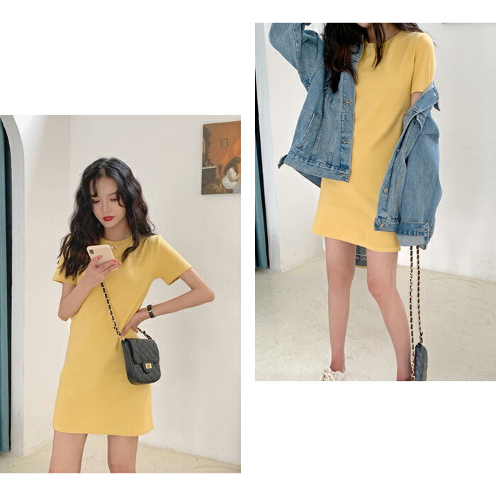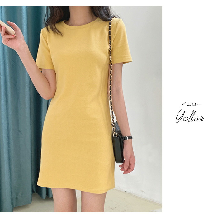 Tシャツ 半袖 ロング ワンピース レ レディースファッション 続々登場 イエロー ピンク ライトブルー パープル ブラック Mサイズ Lサイズ